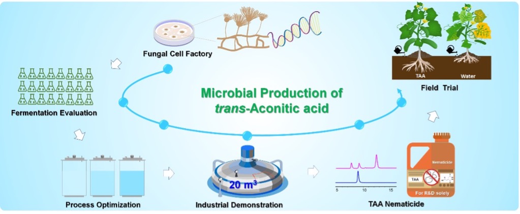 Исследователи Института создали эффективную «фабрику» по производству кислоты, достигнув выхода 60 г/л на 20-тонных ферментерах. Более того, они доказали ее практическую ценность: полевые испытания, проводимые совместно с Shandong Lukuang Pharmaceutical, показали, что транс-аконитовая кислота в порошковой форме эффективно борется с вредоносными нематодами на огурцах, демонстрируя результат, сопоставимый с химическим препаратом тиазофос, но при значительно более низких затратах. Эта работа открывает путь к созданию экологически чистых биопестицидов и решает проблему доступности сырья для дальнейших исследований.